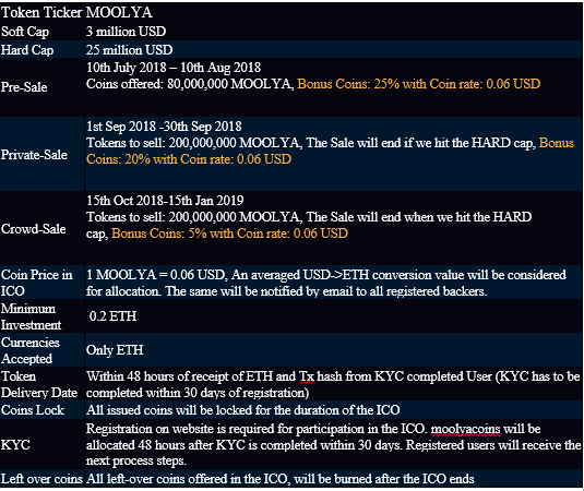 The above is information from the ICO, to better understand moolyacoin, it is a project moolya is the first complete digital startup ecosystem in the world where ideators, startups, investors, companies, service providers and institutions converge, collaborate , synergize and prosper together. moolya is the world's first global digital startup ecosystem where entrepreneurs, start-ups, investors, businesses, service providers and institutions converge, collaborate, combine and thrive together.